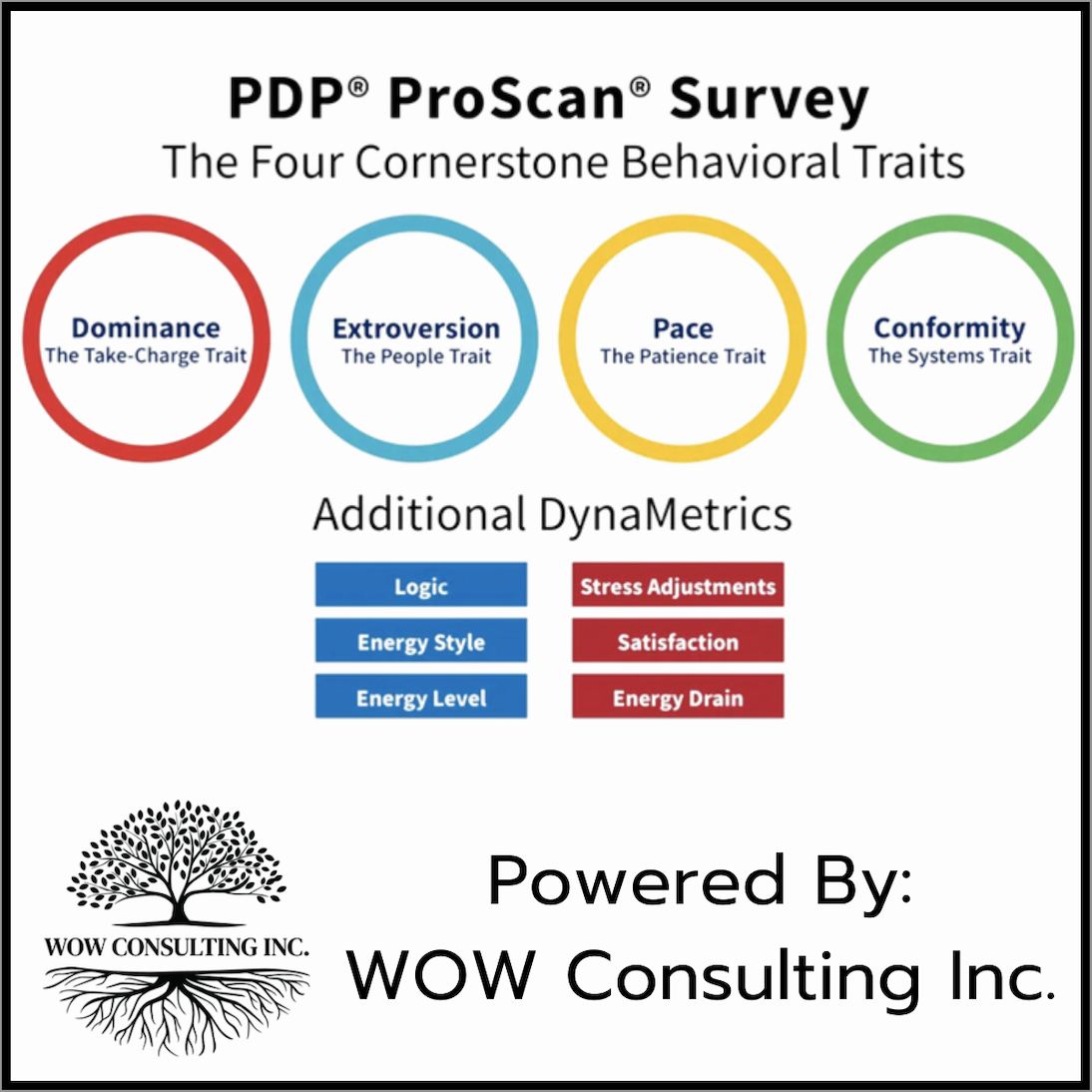 Consisting of 60 highly researched self-descriptive adjectives, the ProScan Survey instrument measures important behavioral traits in people from three perspectives: the true person (Basic/Natural Self), the pressures the person is experiencing (Priority Environments), and the projected persona (Predictor/Outward Self). The four cornerstone traits the ProScan Survey measures are Dominance, Extroversion, Pace, and Conformity.